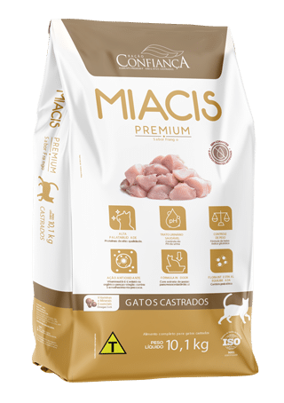 MIACIS Gatos Castrados é um alimento completo e balanceado para gatos castrados de todas as raças. É especialmente formulado sem corantes e sem aromatizantes artificiais, com ômega 6 e zinco orgânico para a manutenção da beleza com vintaminas e minerais. Contém em sua composição antioxidantes naturais, como a vitamina E, vintamina C e o selênio orgânico que protegem as células contra o envelhecimento precoce, proporcionando mais qualidade de vida ao seu animal.
